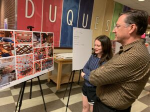 Reporter Kaitlyn Hughes, of the campus publication The Duquesne Duke, spoke with Darrin about the renovations and our design process:
